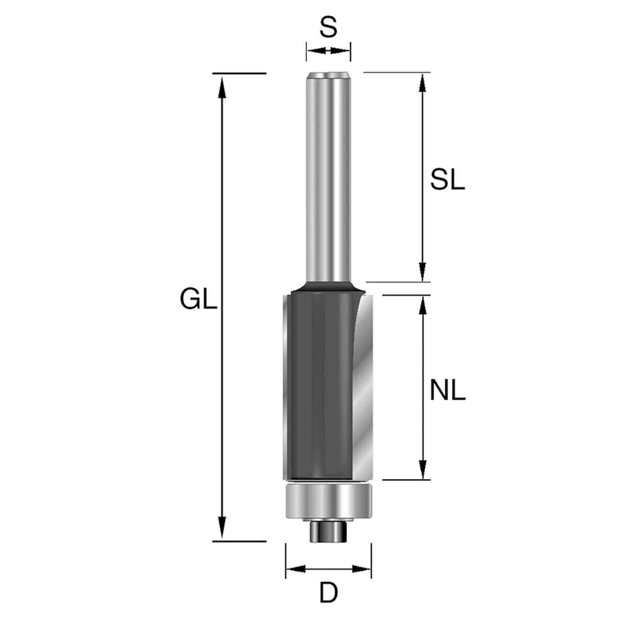 BRÜCK HW-Bündigfräser Typ 280 Z2 D=19,05mm,NL=19mm,GL=62mm,S=8x32mm
