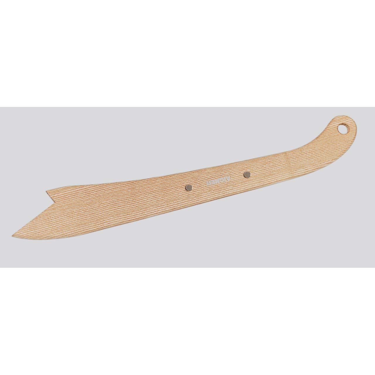 Der Aigner-Schiebestock ist aus Holz und daher umweltfreundlich, leicht zerspanbar, schont die Schneiden und schützt die Hände.