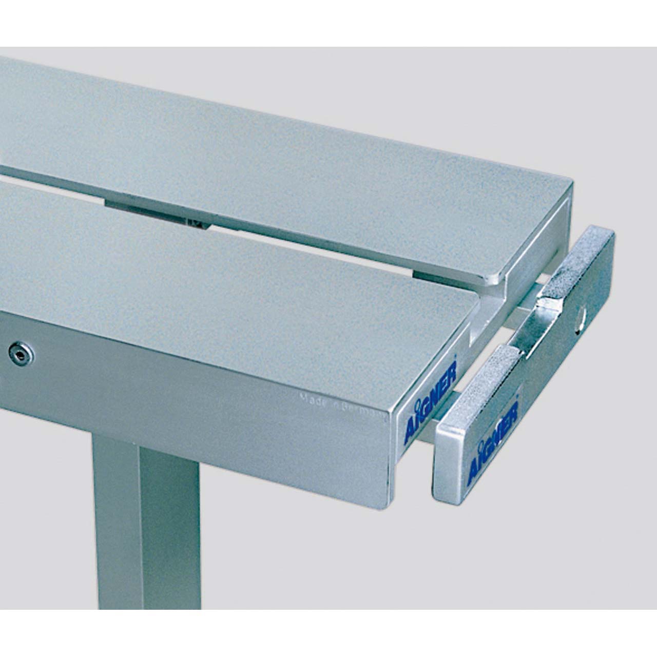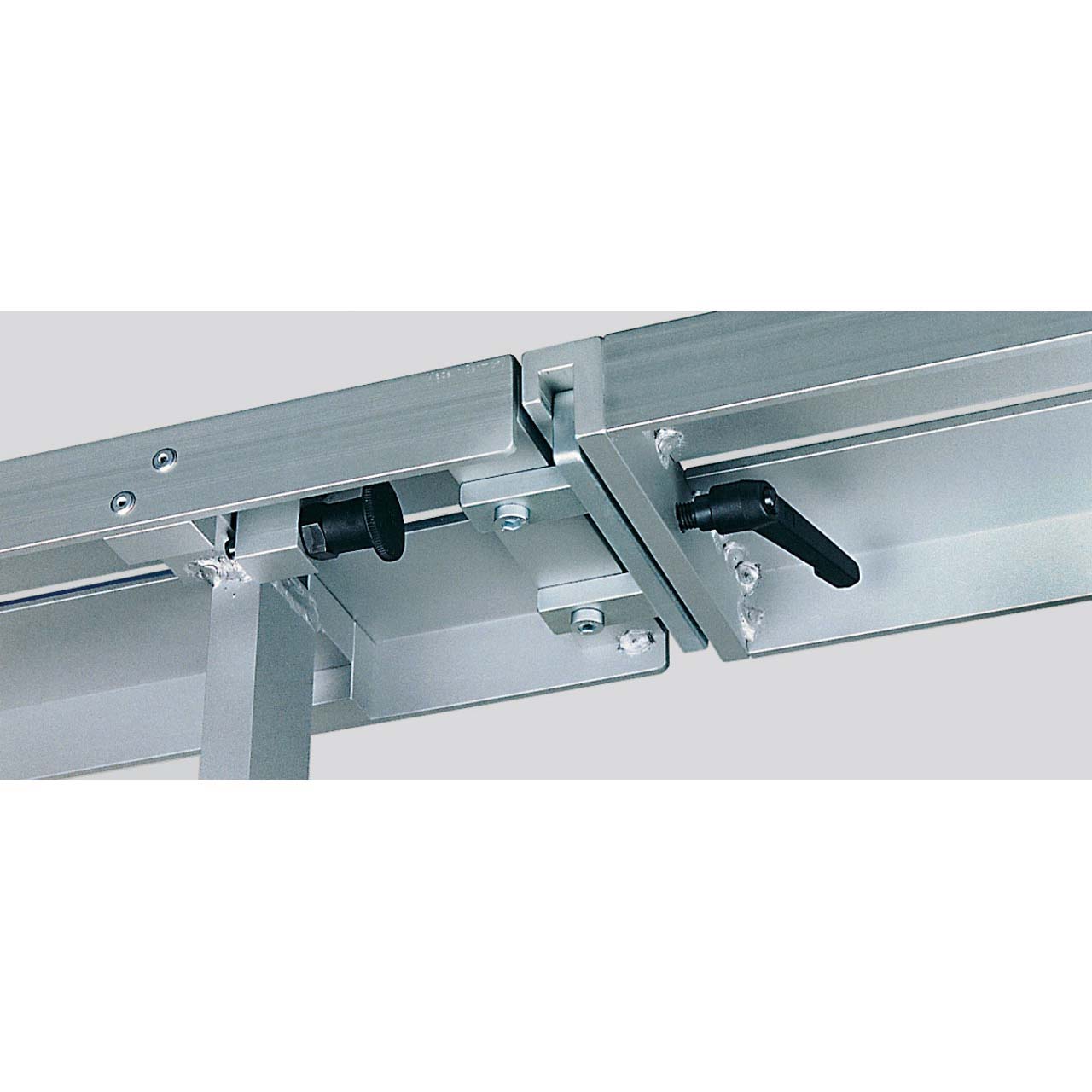 Zur Bearbeitung überlanger Werkstücke können Aigner-Tischverlängerungen mit dem Aigner-Verbindungssteg hintereinander verbunden werden. An dem montierten Verbindungssteg lässt sich blitzschnell eine weitere Tischverlängerung fest anklemmen.