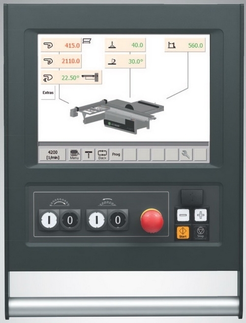 In der F 45 ElmoDrive steckt die modernste und umfassendste Steuerungstechnik für Formatkreissägen. In Augenhöhe angebracht, vereint sie höchsten Bedienkomfort und Übersichtlichkeit mit praxisnaher und ergonomischer Anwendung. Sehr einfach und übersichtlich sind die Funktionen Taschenrechner, Geometrische Formen, Schifterschnitt und Werkzeugverwaltung auf dem 12" großen Touchscreen abrufbar. Selbstverständlich können Sie mit der F 45 ElmoDrive alle Achsen elektromotorisch verfahren und das Sägeaggregat beidseitig schwenken. Im unteren Teil des Bildschirms können Sie regelmäßig benötigte Funktionen ablegen (Desktop-Funktion), was das Arbeiten noch effizienter gestaltet. Die F 45 ElmoDrive ist die einzige Steuerung, bei der die Anbindung einer Zuschnittoptimierung möglich ist. Alles zusammen genommen haben Sie mit der F 45 ElmoDrive das Nonplusultra der Steuerungstechnik zur Hand. Tagtäglich.