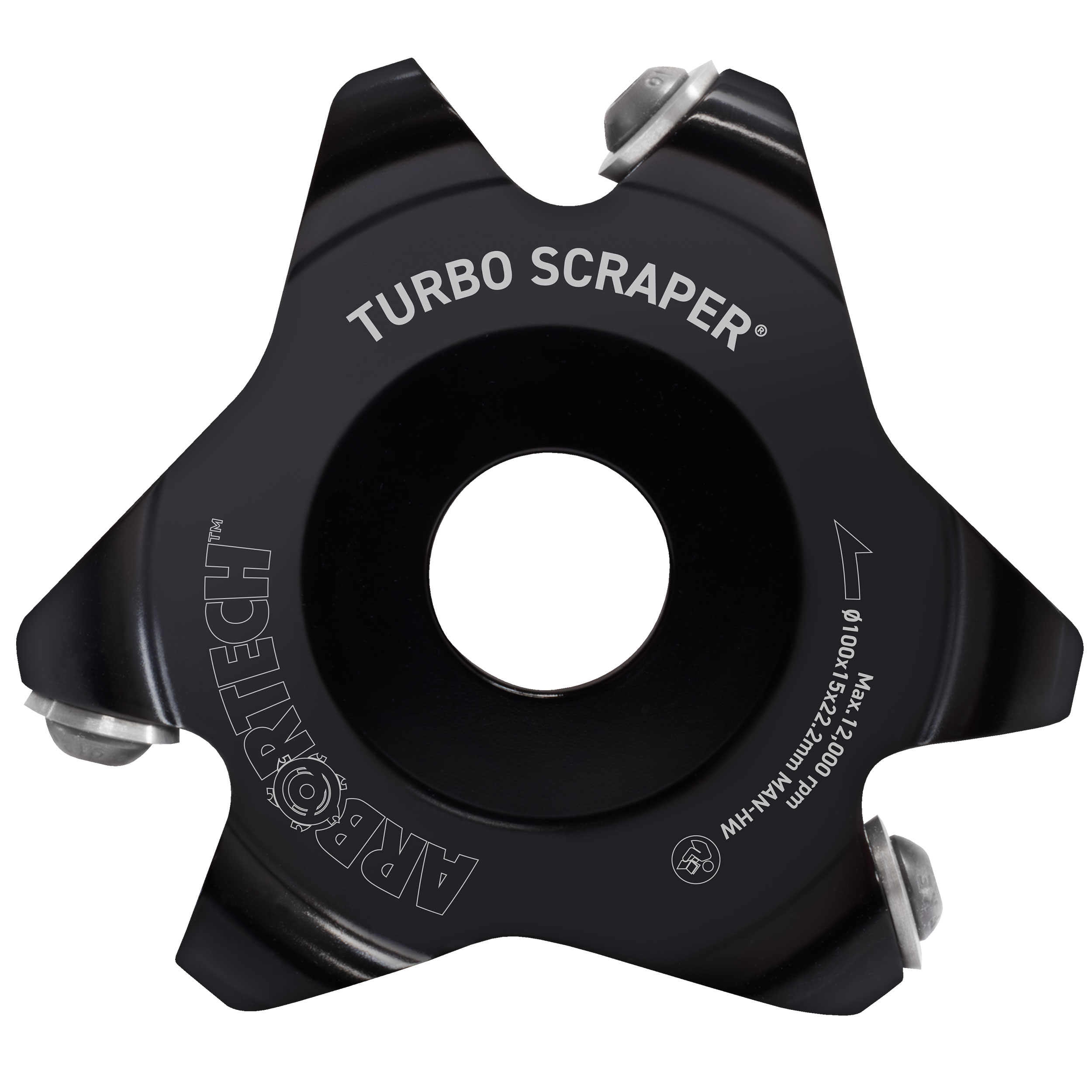 Der Arbortech TURBO Scraper™ ist eine leistungsstarke Version des traditionellen Holzhandschabers. Um zu verhindern, dass er sich in das Holz gräbt, wurde er so entwickelt, dass er in einem negativen Winkel schneidet. Die Scheibe kann durch Druck kontrolliert werden und liefert ein glattes und kratzfreies Ergebnis. Sein einzigartiges Design ermöglicht, während der Anwendung, eine geradezu freie Sicht auf das Werkstück. Dadurch kann bei der Arbeit eine unvergleichliche Genauigkeit erzielt werden. Das macht den Schaber zum perfekten Werkzeug für sehr detailliertes Arbeiten.