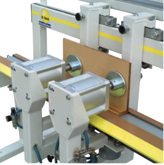 Die pneumatische Kantenpresse MOBIL Typ 2500 und Typ 3000 ist eine einfache und solide Kantenpresse zum Anleimen von Massivholzkanten und Blenden. Das starre Pressbett mit eingebauter Heizschiene bietet den Vorteil, dass die Werkstücke zum Pressbett angepresst werden und jeden Pressaggregat eine selbstständige Presseinheit ist. Die Pressaggregate sind auf der gesamten Arbeitsbreite frei verschiebbar und feststellbar. Die Kantenpresse ist so konstruiert, dass der Bediener freie SIcht auf die Werkstücke hat und somit vor der Verpressung seine Arbeit kontrollierenkann. Durch das breite Pressbett können auch breite Anleimer oder Blenden bis 105 mm Breite angeleimt werden.