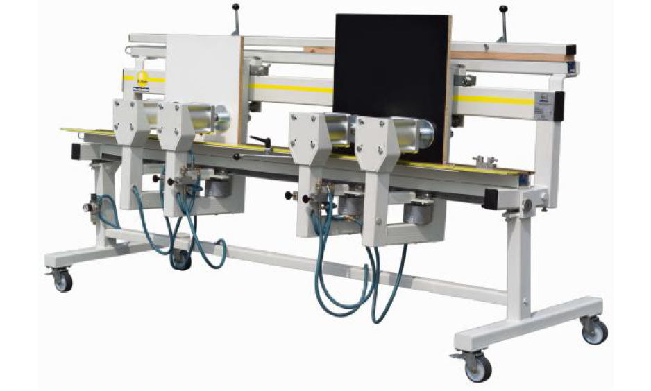 Die pneumatische Kantenpresse MOBIL Typ 2500 und Typ 3000 ist eine einfache und solide Kantenpresse zum Anleimen von Massivholzkanten und Blenden. Das starre Pressbett mit eingebauter Heizschiene bietet den Vorteil, dass die Werkstücke zum Pressbett angepresst werden und jeden Pressaggregat eine selbstständige Presseinheit ist. Die Pressaggregate sind auf der gesamten Arbeitsbreite frei verschiebbar und feststellbar. Die Kantenpresse ist so konstruiert, dass der Bediener freie SIcht auf die Werkstücke hat und somit vor der Verpressung seine Arbeit kontrollierenkann. Durch das breite Pressbett können auch breite Anleimer oder Blenden bis 105 mm Breite angeleimt werden.