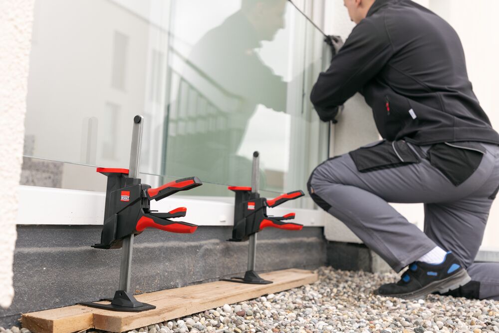 Schnelle, werkzeuglose Montage – nur in Verbindung mit dem Verlängerungsadapter (Nutzbereich 170 mm bis 400 mm) oder zusätzlich mit Schieneneinheit (Nutzbereich 392 mm bis 620 mm)