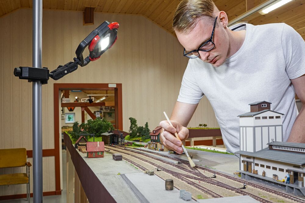 2 Rotationsachsen (360° neben Besfestigungsklemme, 180° an Gewindeaufnahme)