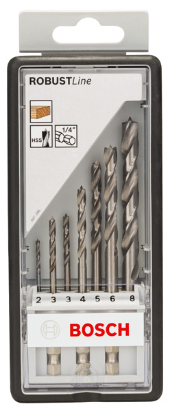 BOSCH 7-teiliges Holzspiralbohrer-Set, Robust Line, Sechskantschaft, 2–8 mm