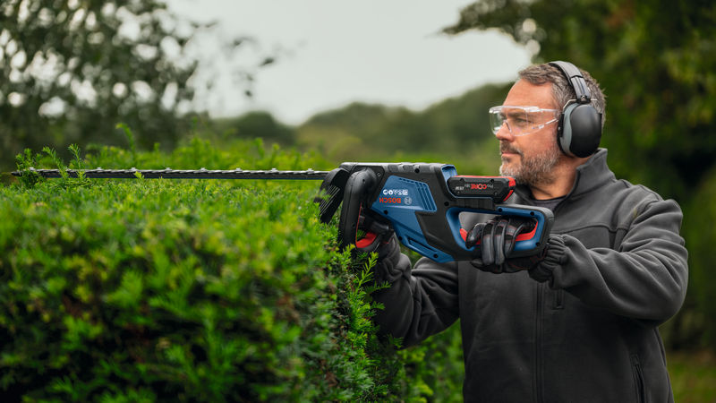 Akku-Heckenschere GHE 18V-50 (II), Wer nach einer leistungsstarken und dennoch leichten Heckenschere sucht, die bequemes Arbeiten über viele Stunden ermöglicht, für den ist die akkubetriebene Bosch Heckenschere GHE 18V-50 (II) genau das Richtige. Der leistungsstarke bürstenlose Motor liefert 2.800 Hübe pro Minute für hohe Schnittleistung über eine lange Laufzeit. Dieses Gerät erleichtert das Schneiden von dicken Ästen und verhindert dank der 50 cm langen Klinge und dem patentierten Bosch Anti-Blockier-System ein Verklemmen. Weiteres Plus: Das zusätzliche Schwungrad ermöglicht gleichmäßigeres Trimmen mit noch weniger Kraftaufwand. Mit einem Gewicht von nur 2,9 kg und einer optimalen Balance ist dieses ergonomische Werkzeug leicht zu handhaben und reduziert die Belastung beim Schneiden über längere Zeit. Die Bosch Heckenschere GHE 18V-50 (II) Professional eignet sich ideal zum Schneiden und Trimmen von Hecken, an der Krone ebenso wie an den Seitenflächen. Die Heckenschere GHE 18V-50 (II) Professional von Bosch wird mit einem 50 cm langen Schwert geliefert, hat einen Zahnabstand von 23 mm zum Schneiden dickerer Äste und ist mit dem Bosch Professional 18V System und mit der AMPShare Akku-Allianz kompatibel.