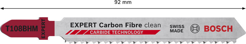 Hohe Lebensdauer bei sauberen Schnitten in Kohlefaser! Carbide-Leiste bietet Steifigkeit und Festigkeit Kohlefaser ist ein vielseitiges Material, das von vielen der anspruchsvollsten Industrien der Welt geschätzt wird. Es wird in der Luft- und Raumfahrt, beim Bootsbau und für Sportgeräte verwendet, aber es ist schwierig zu schneiden: Du benötigst ein Blatt, das sowohl hochtechnologisch als auch robust ist - wie das EXPERT Carbon Fibre clean T108BHM. Technisch ausgereift und scharf, aber robust und belastbar: Das Bosch EXPERT EXPERT Carbon Fibre clean T108BHM-Stichsägeblatt ist das perfekte Zubehör für die Arbeit mit modernen Kunststoffverbundwerkstoffen und Kohlefasern. Überragende Lebensdauer dank Bosch Carbide Technology