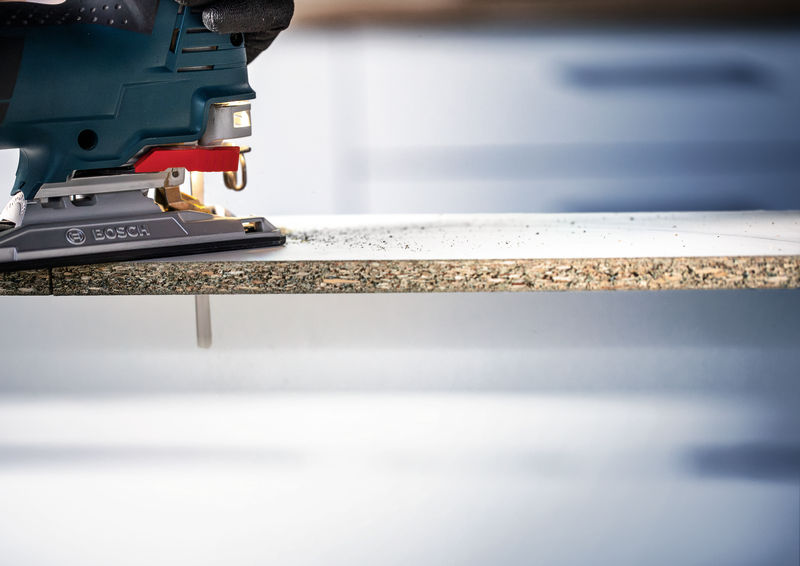 Ideal für ausrissfreie gerade Schnitte in kunststoffbeschichteten Plattenmaterialien wie Küchenarbeitsplatten.