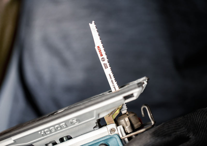Oben wie unten sehr sauberer Abschluss - Unter Tischlern und Schreinern war es schon immer eine Kunst sicherzustellen, dass der sichtbare Teil des Arbeitsmaterials die „saubere Seite“ eines Stichsägenschnitts zeigt. Manchmal muss man das Werkstück zum Sägen umdrehen oder sägt von der Unterseite, um die gewünschte Schnittqualität auf der Sichtseite zu haben. Oder du verwendest das EXPERT ‘Hardwood 2-side clean’, welches dank seiner Zahngeometrie auf beiden Seiten einen perfekten, ausrissfreien Schnitt bietet. Das ausgeklügelte Design dieser Stichsägeblätter macht nach dem Schneiden keine weiteren Arbeiten erforderlich. Durch die Zähne wird ein Ausreißen beim Aufwärts- und Abwärtshub vermieden. Dies ist perfekt für Profis, die Zeit sparen und ihren Kunden Arbeit von höchster Qualität bieten möchten. Hergestellt aus Bi-Metall – einer Leiste aus Schnellarbeitsstahl, die auf ein flexibles Stahlblatt geschweisst wird, um Festigkeit und Flexibilität zu kombinieren – ist das Bosch EXPERT 'Hardwood 2-side clean' Stichsägeblatt robust genug um beschichtete Küchenplatten aus Grobspanplatten oder Hartholz zu schneiden. Erhältlich für ausrissfreie gerade Schnitte (T308BF) und für besonders genaue ausrissfreie Winkelschnitte (T308BFP) Passend für alle T-Schaft-Stichsägen.