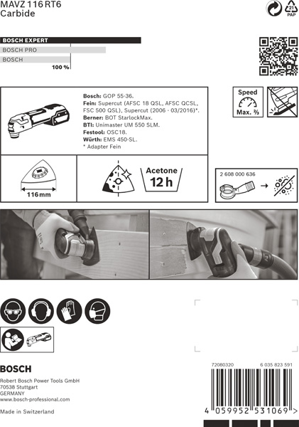 BOSCH EXPERT Sanding Plate MAVZ 116 RT6 Blatt für Multifunktionswerkzeuge, 116 mm