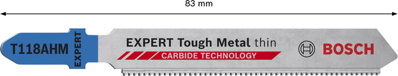 Hält bis zu 50-mal länger als ein Bosch T118G Stichsägeblatt in zähen Materialien - Das Schneiden von Blechen aus Edelstahl ist eine Aufgabe, die Metallarbeiter täglich durchführen müssen. Auch bei der Montage von Küchen und in Industrie- oder Bürogebäuden ist dies üblich. Profis, die diese Arbeit erledigen, benötigen ein Blatt, das zuverlässig ist und weiter funktioniert, damit sie nicht ständig die Blätter austauschen müssen. Das für die härtesten Metalle optimierte EXPERT ‘Stainless Steel’ hat eine Zahnteilung, die der Dicke der Bleche entspricht, mit denen du arbeitet. Die herausragende Lebensdauer dieses Blattes wird durch die Bosch Carbide Technology garantiert. Dabei wird eine Zahnleiste aus dem härtesten Metall auf den Körper lasergeschweißt. Es schneidet die härtesten Bleche äußerst effektiv und bietet die beste Lebensdauer. Das Bosch EXPERT ‘Stainless Steel’ Stichsägeblatt für dünnes Material gibt es in zwei Versionen: Das T118 AHM für sehr dünne Bleche hat eine sehr feine Zahnteilung. Das T118 EHM mit mittelfeinen Zähnen ist daher der beste Wahl für Profis, die dünne Bleche aus hochfestem Stahl oder Rohre mit mittleren bis dünnen Wänden schneiden müssen. Passend für alle T-Schaft-Stichsägen.