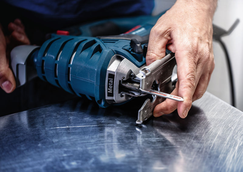 Ideal für gerade Schnitte in Edelstahlblech wie etwa Anpassungsschnitte an Industriearmaturen, im Maschinenbau und bei Montagearbeiten an Aufzügen und Rolltreppen.