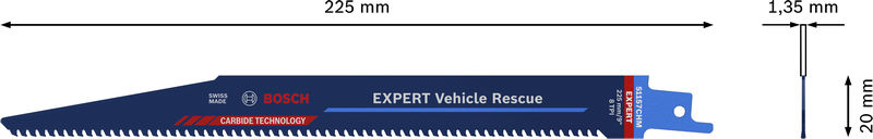 Schneiden von modernem Automobilstahl! Erster Zahn ermöglicht Tauchschnitte Bei Rettungsarbeiten an Fahrzeugen kann das schnelle Eindringen in ein Auto über Leben und Tod entscheiden. Rettungsdienste setzen zunehmend Säbelsägen als wertvolles Rettungswerkzeug ein. Sie brauchen jedoch ein wirklich gutes Sägeblatt, das modernen Automobilstahl zuverlässig durchschneiden kann. Das EXPERT Vehicle Rescue ist für diese wichtige Aufgabe ausgelegt. Das mit der Bosch Carbide-Technologie gefertigte Bosch EXPERT Vehicle Rescue-Säbelsägeblatt schneidet moderne Fahrzeuge schnell und zuverlässig auf - und hilft dir, Leben zu retten. Überragende Lebensdauer dank Bosch Carbide Technology