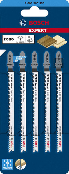 BOSCH EXPERT ‘Wood 2-side clean’ T 308 BO Stichsägeblatt, 5 Stück