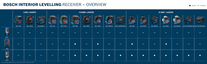 Hochleistungsempfänger LR 2, Mehr Nutzen durch Zubehör, Handlicher Empfänger für Reichweiten bis 50 m, Einfache Montage an eine Messlatte, Ausrichten der Laserstrahlebene, optisch (Display und LEDs) und akustisch, zum Arbeiten bei verschiedenen Lichtverhältnissen, 1 x 9 V-Blockbatterie (6LR61)