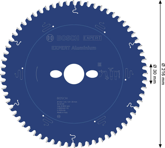 BOSCH Kreissägeblatt Expert for Aluminium, 216 x 30 x 2,6 mm, 64 Zähne