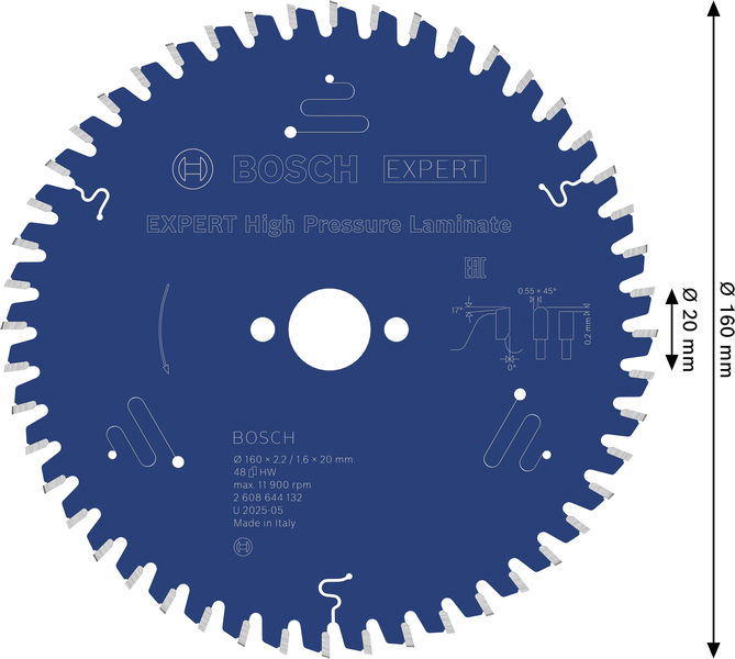 BOSCH Kreissägeblatt Expert for High Pressure Laminate, 160 x 20 x 2,2 mm, 48Z