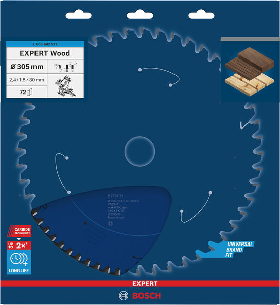 BOSCH Kreissägeblatt Expert for Wood, 305 x 30 x 2,4 mm, 72Z