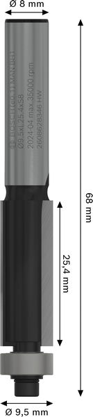 BOSCH Laminat-Bündigfräser, 8 mm, D1 9,5 mm, L 25,4 mm, G 68 mm