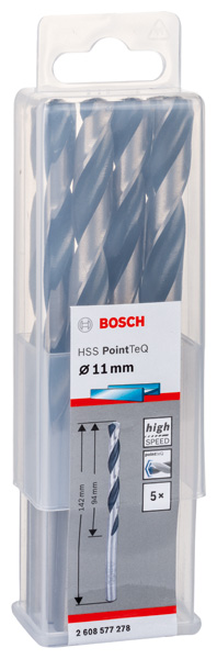 BOSCH Metallspiralbohrer HSS PointTeQ, DIN 338, 11,0 mm, 5er-Pack