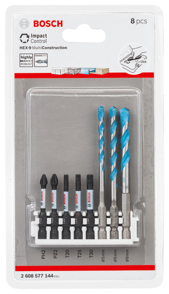 BOSCH PRO Impact Set mit Multi Constr. Bohrer, PH2/PZ2/T20/T25/T30, MC 5/6/8, 8-tlg.