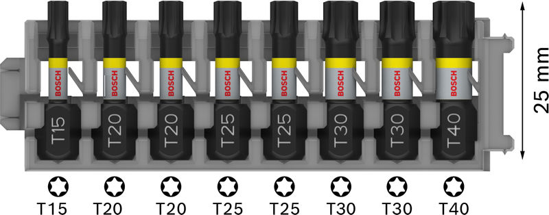BOSCH PRO Torx Impact Bit Set, T15; T20(x2); T25(x2); T30(x2); T40, 25 mm, 8-tlg.