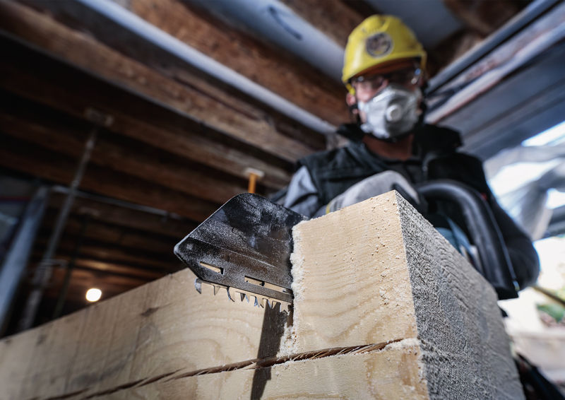 Präzises Schneiden von Holz! Bosch GFZ Führungssystem für Präzision Ein guter, präziser Schnitt in dicke Bauholzbretter und -balken ist bei Bau- und Renovierungsarbeiten unerlässlich. Das PRO Wood TF350M Sägeblatt erfüllt diese Aufgabe perfekt.