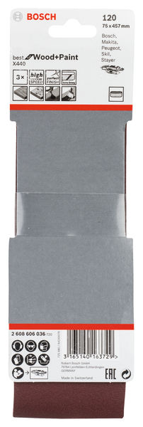 BOSCH PRO X440 Schleifband, 75 x 457 mm, G120, 3-tlg.