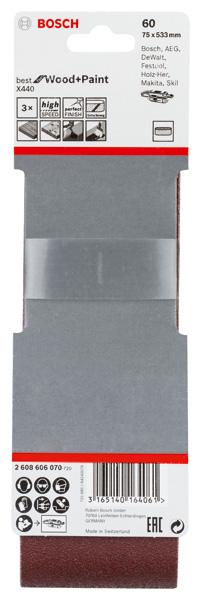 BOSCH PRO X440 Schleifband, 75 x 533 mm, 60, 3-tlg.