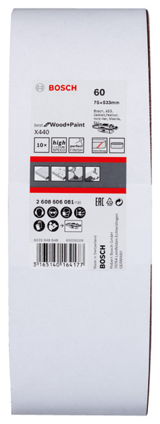 % 28,93 €* (-54.93%)BOSCH Schleifband-Set X440 Best for Wood and Paint, 10-teilig, 75 x 533 mm, K60