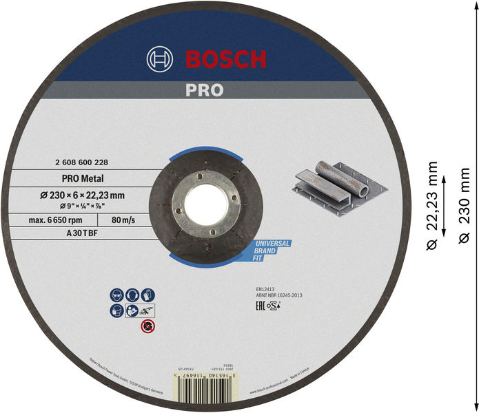 Beeindruckende Lebensdauer/Sicherheit - Die Schruppscheibe Expert for Metal bietet bei maximaler Sicherheit eine beindruckend hohe Lebensdauer. Das Schleifkorn aus Aluminiumoxid und die ausgewählten funktionalen Füll- und Zusatzstoffe in der fortschrittlichen Phenolharzmatrix sind speziell für Metall geeignet. Das präzisionsgefertigte Glasfasergewebe der Scheibe sorgt für hohe Scheibenstabilität und maximale Arbeitssicherheit. Sie ist zum Schleifen von Metall bestimmt. Sie eignet sich Handwinkelschleifer. Mit 22,23 mm Bohrungsdurchmesser für Standard Winkelschleifer mit Spannmutter.