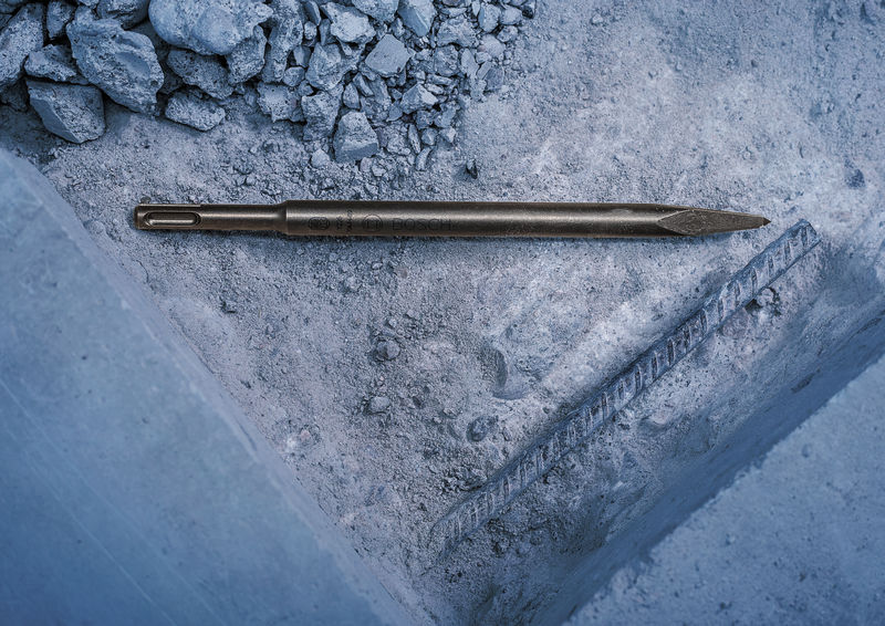 Standardarbeiten in Beton - Der Spitzmeißel mit SDS plus ermöglicht verschiedene Standardarbeiten beim Renovieren und Restaurieren. Der Meißel mit seiner Spitze ist bestimmt für abschließende Anpassungsarbeiten in Beton und Baustein, für das Einreißen oder Entfernen von Wänden sowie für das Wiederherstellen von Fugen und das Freilegen von Armierungen. Er ist kompatibel mit dem Aufnahmesystem SDS plus. Jedoch kann er auch direkt mit Hämmern des Typs mit SDS plus mit Drehstopp verwendet werden. Passend für alle SDS plus Bohrhämmer.