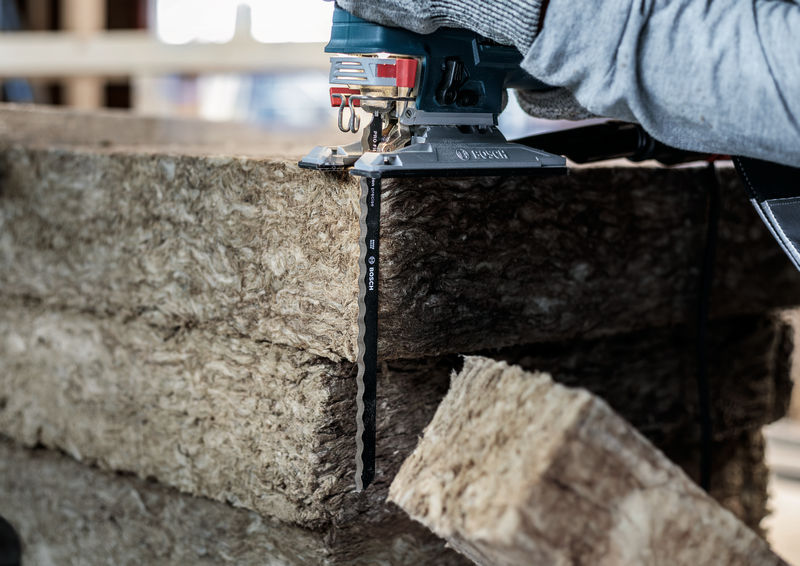 Präzise, saubere Schnitte - Das T 1013 AWP Precision for Soft Material Stichsägeblatt macht präzise und saubere gerade Schnitte in Sonderwerkstoffe. Die erhöhte Stärke des Blatts verhindert Verbiegen und ermöglicht präzise, winkelhaltige Schnitte. Die symmetrisch scharfgeschliffene Messerschneide mit Wellenschliff ist zum Schneiden von Faserdämmmaterialien mit wenig Kraftaufwand konzipiert. Das HCS-Blatt (Kohlenstoffstahl) ist zum Schneiden von nicht-abrasiven weichen Materialien, wie z. B. Faserdämmmaterialien, Karton, Styropor, Teppich, Leder, Gummi und vielen weiteren weichen Materialien geeignet. Das Blatt ist besonders lang (250 mm) zum Schneiden von verschiedenen biegsamen Materialien mit einer Dicke bis zu 160 mm. Für den Gebrauch mit Stichsägen mit T-Schaft-Aufnahme. Elektrowerkzeuge erfordern viel weniger Kraftaufwand als übliche Handmesser. Passend für alle T-Schaft-Stichsägen.