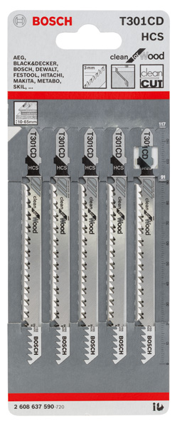 BOSCH Stichsägeblatt T 301 CD Clean for Wood, 5er-Pack