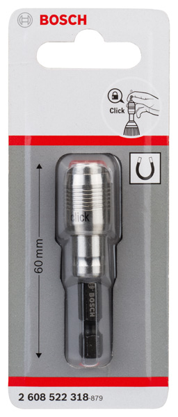 Einhand-Bitwechsel - Der Universalhalter mit One-Click-Funktion bietet besonders kraftschlüssigen Sitz bei allgemeinen Arbeiten. Er ist mit auf dem Spannfutter mit der One-Click-Funktion für einhändigen Bitwechsel versehen und bietet kraftschlüssigen Sitz des Bits. Darüber hinaus gewährt ein Dauermagnet festen und sicheren Sitz des Bits. Der Universalhalter ist hervorragend für alle Befestigungsarbeiten mit Elektrowerkzeugen geeignet. Es besitzt einen Außensechskantschaft der Größe 1/4-Zoll für allgemeine Schraubarbeiten mit Schraubendrehern und Bohrschraubern. Sechskantschaft für maximale Kraftübertragung in Standard-Bohrfuttern und in Sechskantaufnahmen.
