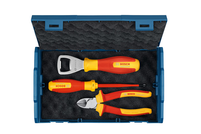 Limitiertes Set mit 3 Werkzeugen: 1 VDE-Schraubendreher, 1 VDE-Diagonal-Seitenschneider und 1 Flaschenöffner