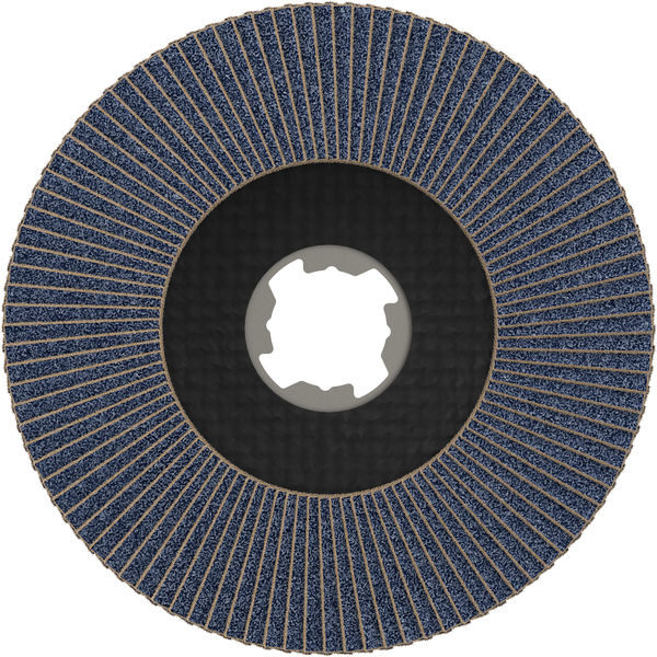 Die X-LOCK Fächerschleifscheibe X571 Best for Metal bietet eine hervorragende Lebensdauer bei Metallarbeiten. Ihr Schleifflächenbesatz aus hochwertigem zirkoniumoxidverstärkten Halbedelkorundkorn ist bei extensiven Arbeiten an Metall robust und verschleißfest. Die Scheibenträgerplatte ist sowohl gewinkelt als auch gerade erhältlich und besteht aus Glasfasermaterial. Dank schlüssellosem X-LOCK-System lassen sich die Fächerschleifscheiben schnell und bequem wechseln.