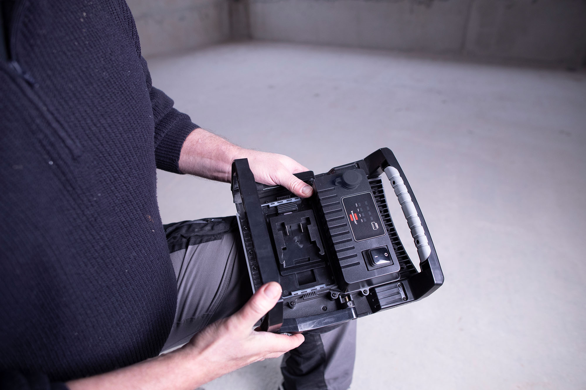 Der extrem robuste und leistungsstarke Multi Battery LED Hybrid Strahler 6050 MH für den professionellen Einsatz sorgt für maximale Flexibilität im Handwerk dank dem Brennenstuhl Multi Battery 18V System. Die LED Arbeitsleuchte mit 60W Leistung ermöglicht es, auf das Akku-System seiner Wahl zurückzugreifen - und das im High Performance Bereich. Der leistungsstarke Arbeitsstrahler sorgt für noch mehr Effizienz durch Kompatibilität zu 11 18V Akku-Systemen der Powertool-Hersteller Bosch Professional, Dewalt, Einhell, Fein, Festool, Flex, Hikoki, Makita, Metabo CAS, Milwaukee und Würth. Brennenstuhl ist Teil von AMPShare - Powered by Bosch Professional. Die AMPShare Akku-Allianz ermöglicht die Verwendung der Brennenstuhl Arbeitsstrahler mit den 18V Akkus von Bosch Professional. Ganz egal also welches Akku-System bereits im Einsatz ist, das Brennenstuhl Multi Battery 18V System ermöglicht eine volle Kompatibilität. Der schlagfeste Baustrahler mit innovativer Schnittstellen-Technologie ermöglicht dank Hybridtechnik einen Akku- und Netzbetrieb und überzeugt außerdem durch folgende Eigenschaften:
