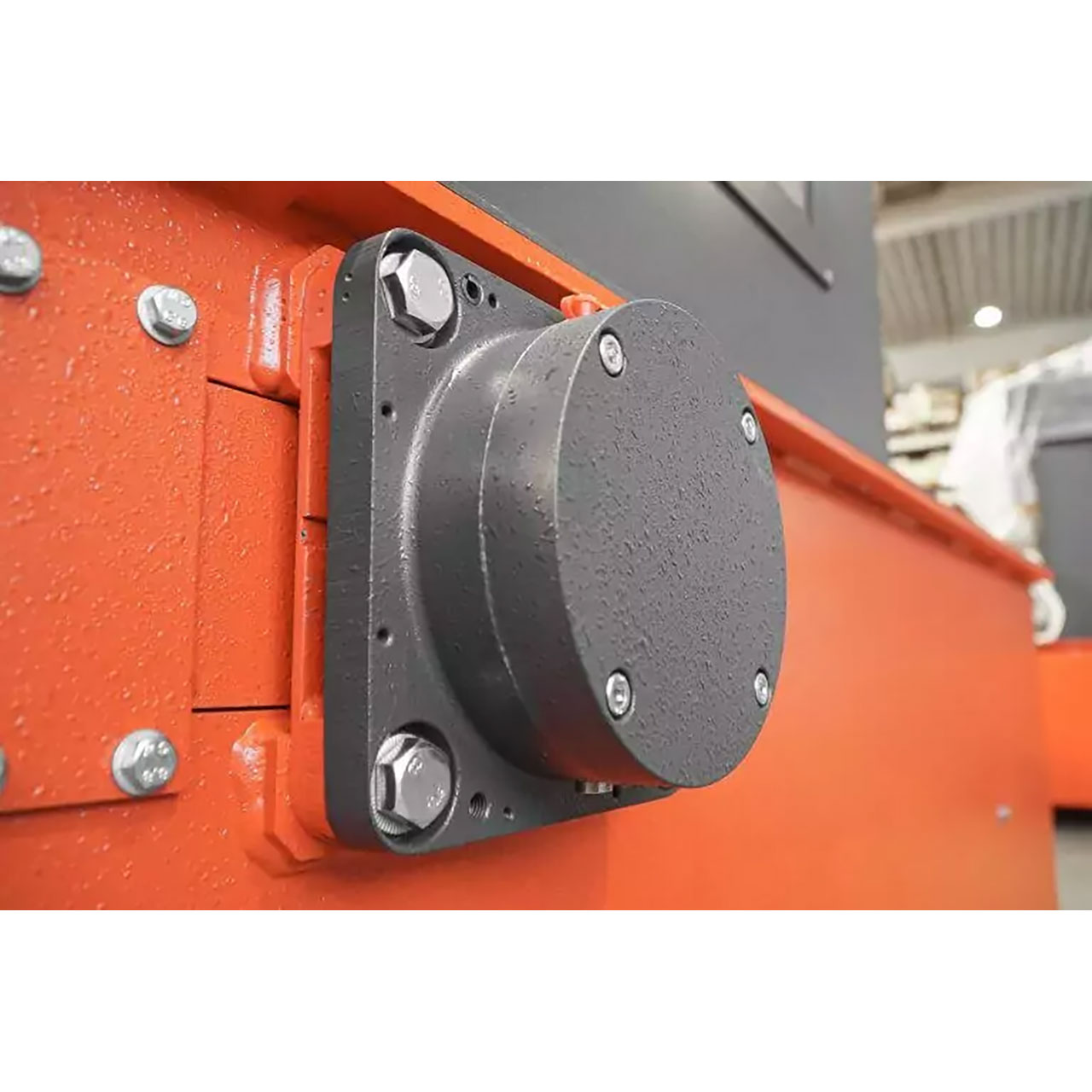 Ein Rotorlager muss aufgrund seiner extremen Beanspruchung beim Zerkleinerungsbetrieb besonders robust gebaut sein. Um zu verhindern, dass Staub oder Fremdstoffe in sein Inneres gelangen, haben wir es vom Maschinengestell abgesetzt. Dies macht es zudem sehr wartungsfreundlich und einfach zugänglich.