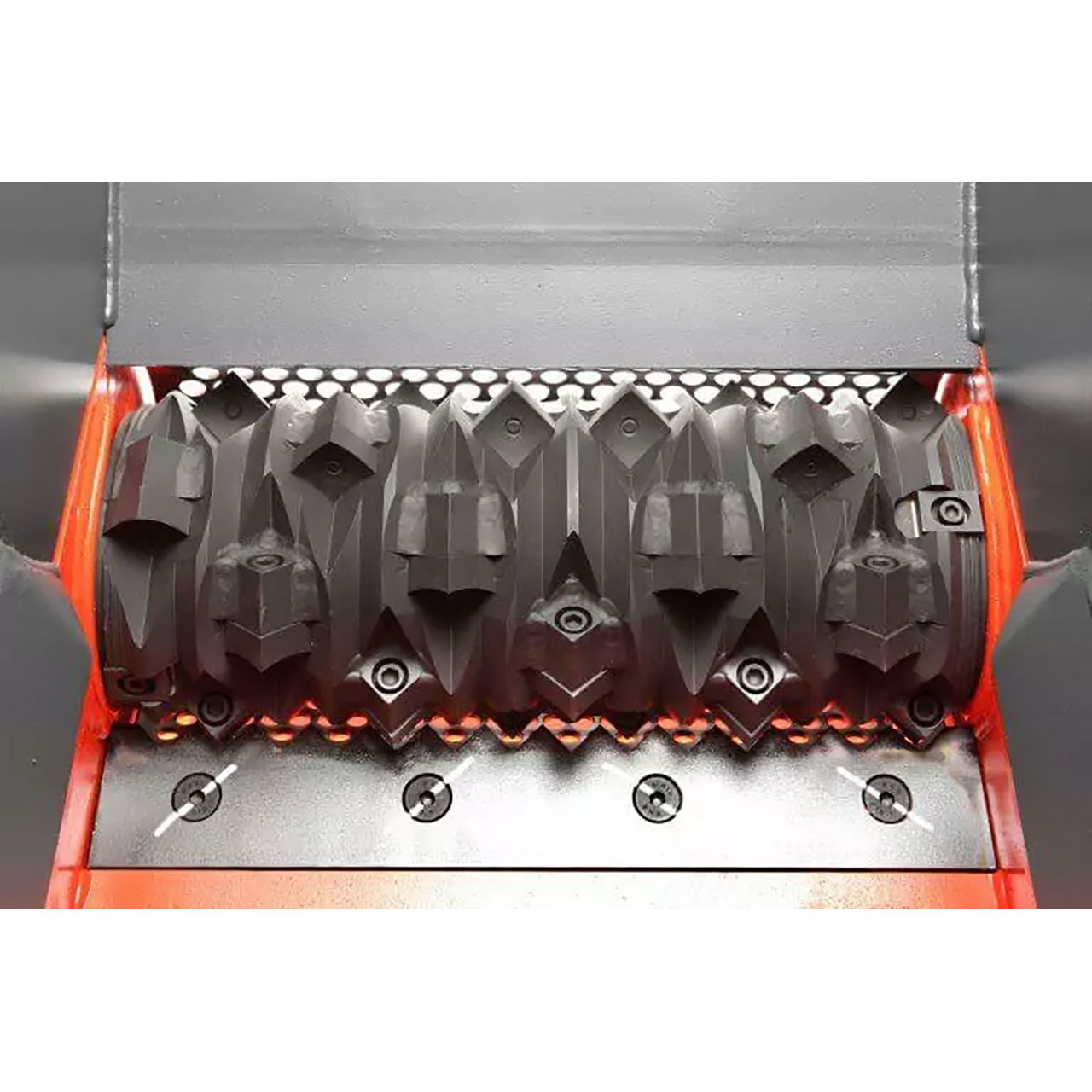 Passen Sie das Sieb Ihre Bedürfnisse an. Je kleiner der Lochdurchmesser, desto feiner wird das zerkleinerte Material, das ausgetragen wird. Siebe lassen sich flexibel austauschen und sind standardmäßig verschraubt.