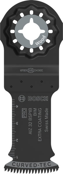Herausragende Lebensdauer in Hartholz und abrasiven Holzwerkstoffen! Bi-Metall Blatt: Kombiniert harte Zähne mit flexiblem Blattkörper Als ideale Problemlösung für Profis kombiniert das PRO AIZ 32 BSPIB eine hervorragende Fähigkeit für Tauchschnitte mit einer Zähigkeit, die sicherstellt, dass auch Hartholz und Holzverbundwerkstoffe bearbeitet werden können. Das PRO AIZ 32 BSPIB Tauchsägeblatt besteht aus Bi-Metall für Stärke und Ausdauer. Der Besatz mit japanischen Zähnen machen es besonders langlebig und ermöglichen aggressive und schnelle Schnitte in Hartholz mit weniger Hitzespuren. Durch das Curved-Tec-Design ist die Klinge ideal für ausrissfreie Tauchschnitte.