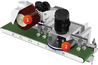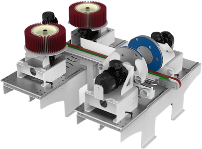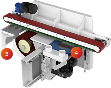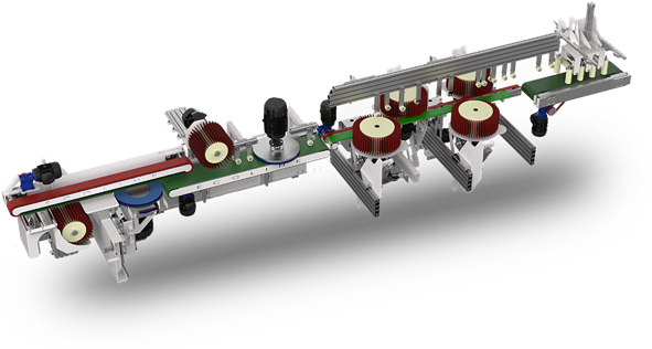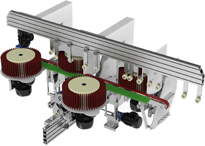 Die Teile werden von motorisierten, gummierten Laufbänder angetrieben, die über Inverter gesteuert werden.