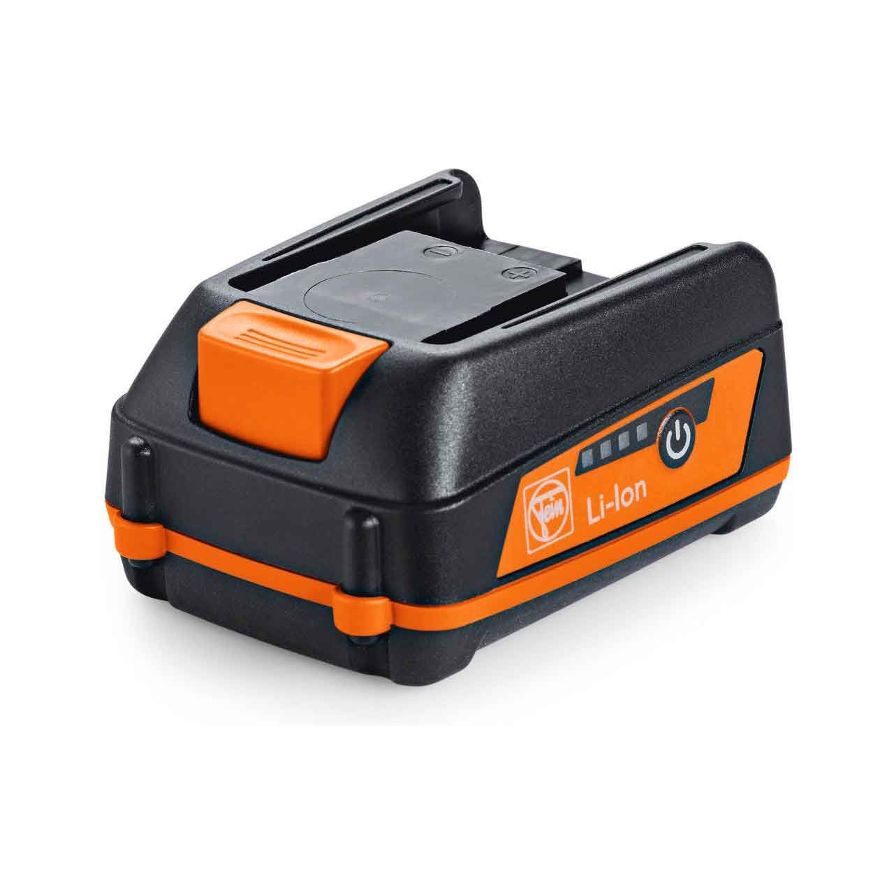 Li-Ionen-Akku mit Ladestandsanzeige und FEIN SafetyCell Technology.