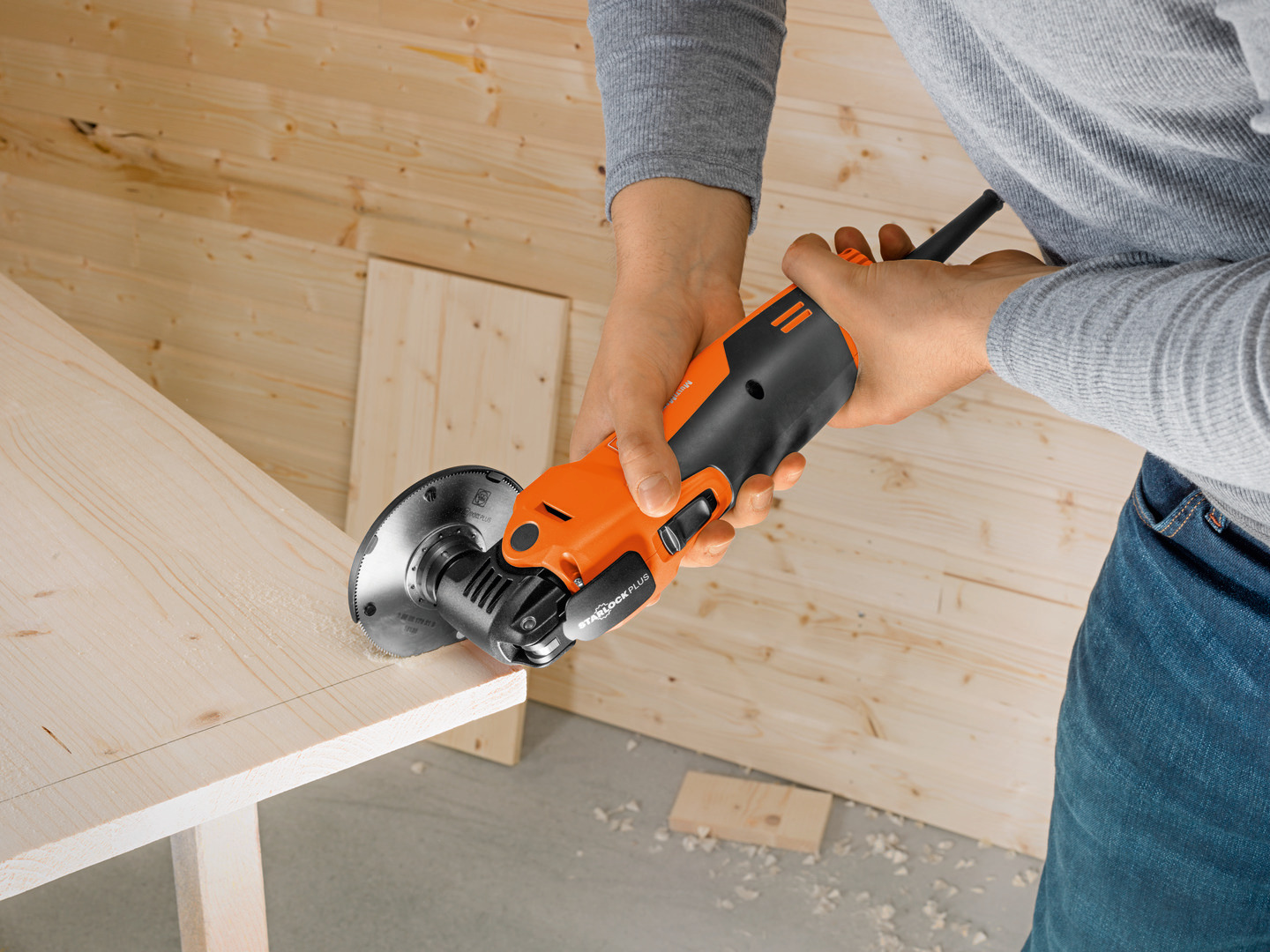 - Als „Mini-Kreissäge“ ideal für lange, gerade Schnitte und zum Ausschneiden von verlegtem Parkett, Laminat und Wandvertäfelungen