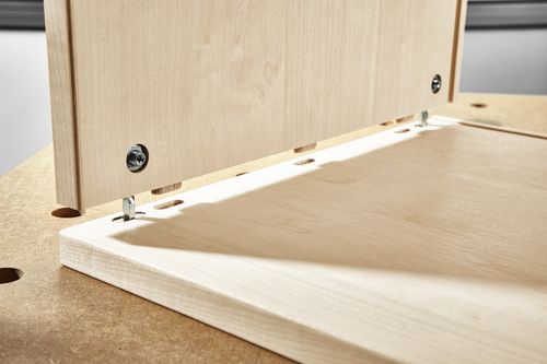 - der DOMINO / DOMINO Verbinder KV D8/50 wird sowohl in der Schrankseite sowie im Konstruktionsboden mit der DOMINO Dübelfräse DF 500 positioniert