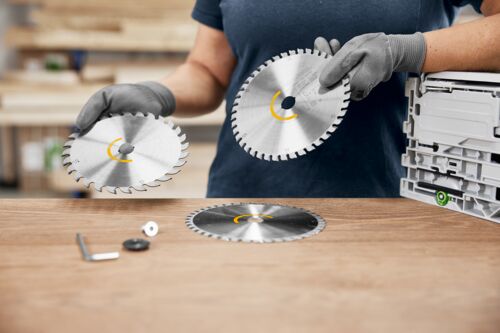 - Schneller Griff zum richtigen Blatt: Mit der Farbcodierung von Festool ist das richtige Sägeblatt schnell gefunden