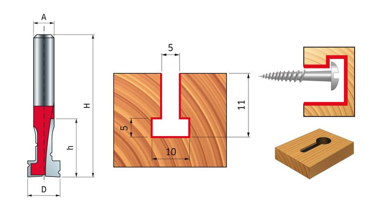 Anwendungen: Die perfekte Methode zum Aufhängen flacher Werkstücke. Das breite Bohrloch ermöglicht das Einschieben von Nagel- oder Schraubenköpfen und der schmalere Schlitz nimmt den Schaft des Nagels oder der Schraube auf.