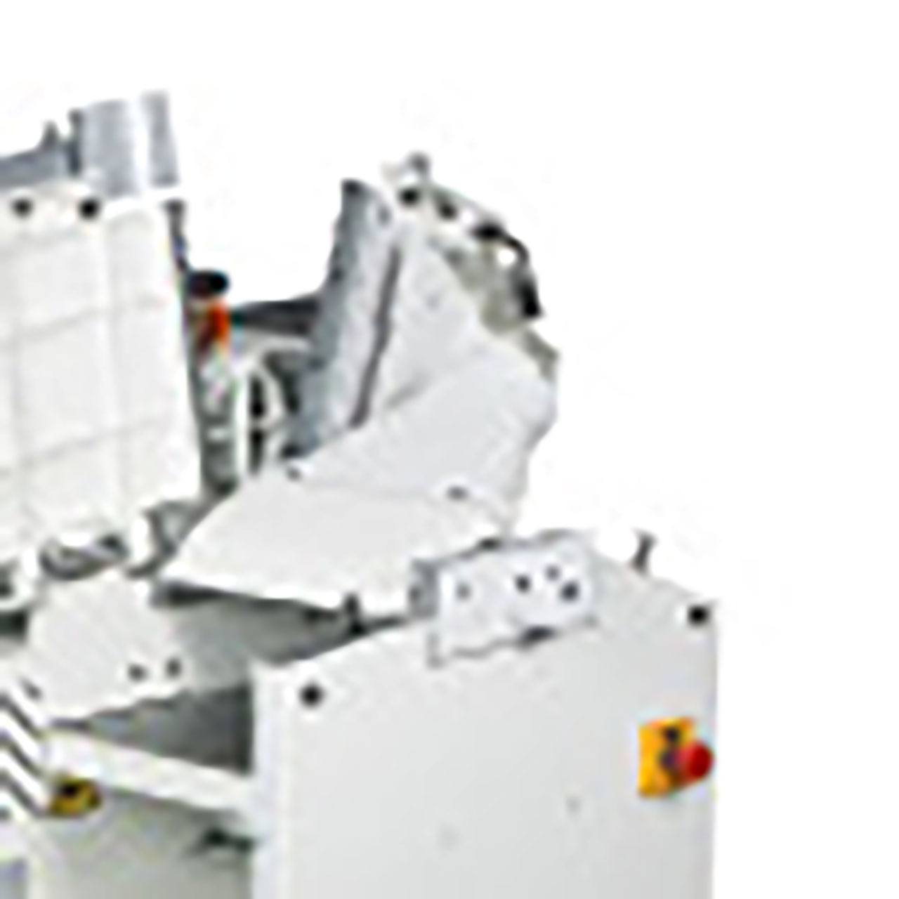 - Schrägverzahnte Stahleinzugswalzen für einen konstanten und gleichmäßigen Materialeinzug ohne Abdrücke