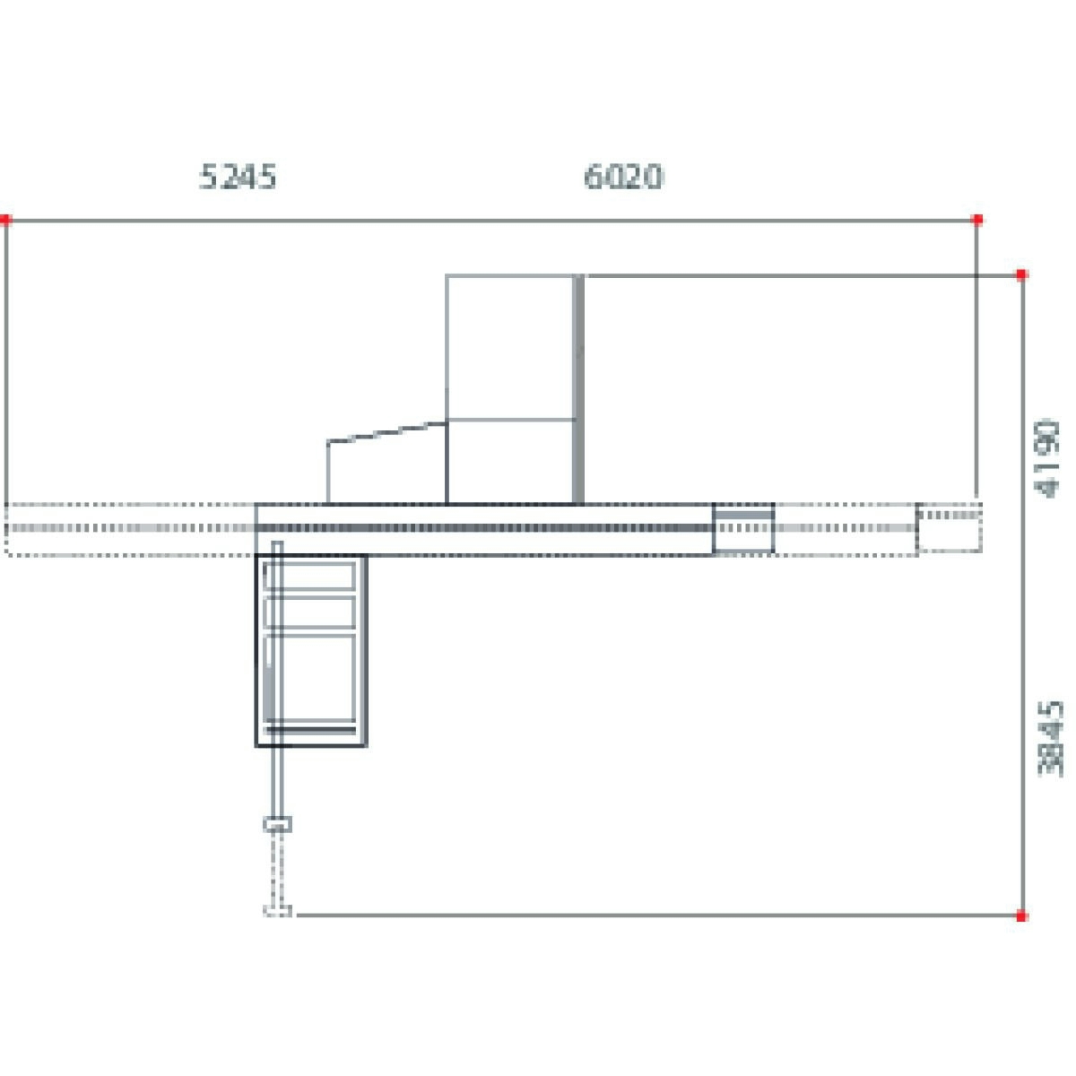 Großflächiger Besäumrahmen auf Teleskoparm geführt und längsverschiebbar